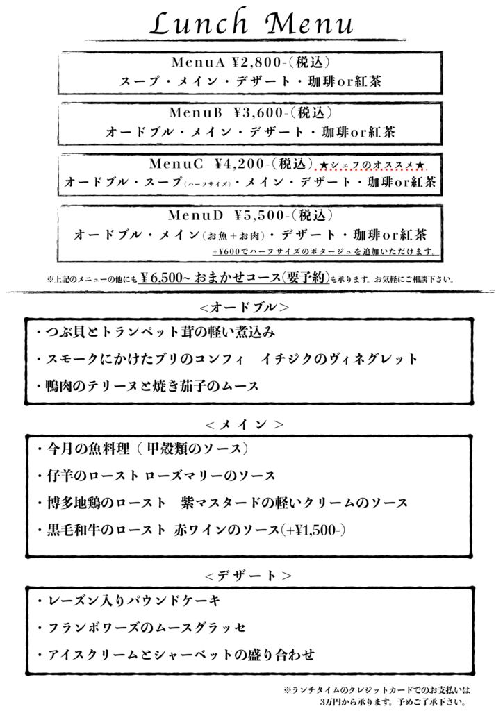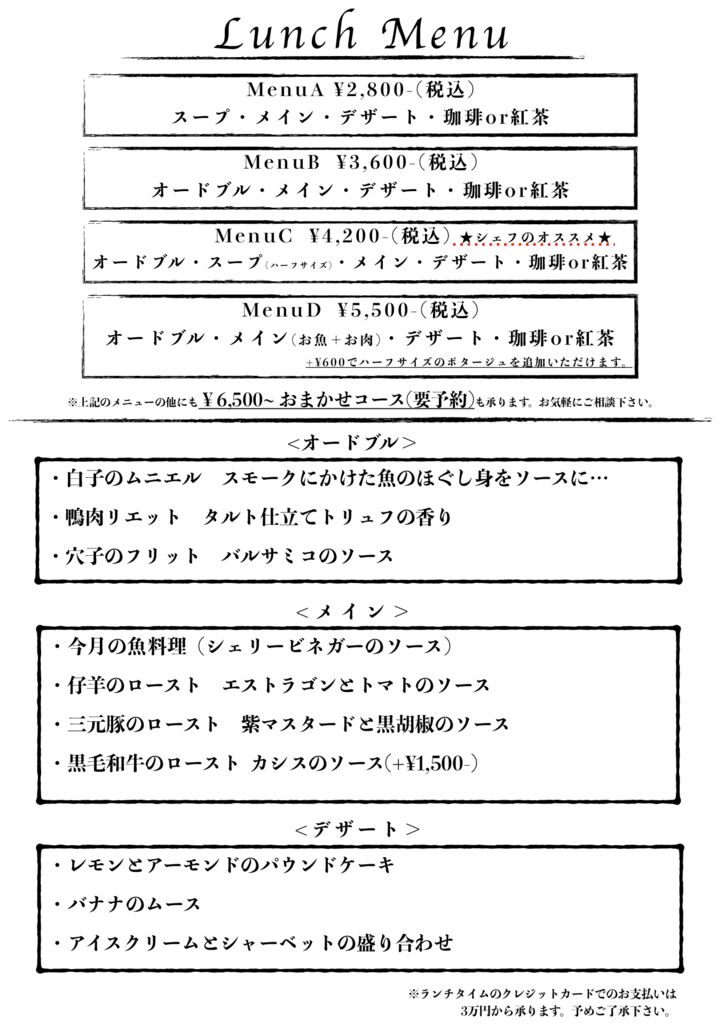 ※ランチタイムのクレジットカードでのお支払いは3万円から承ります。予めご了承ください。